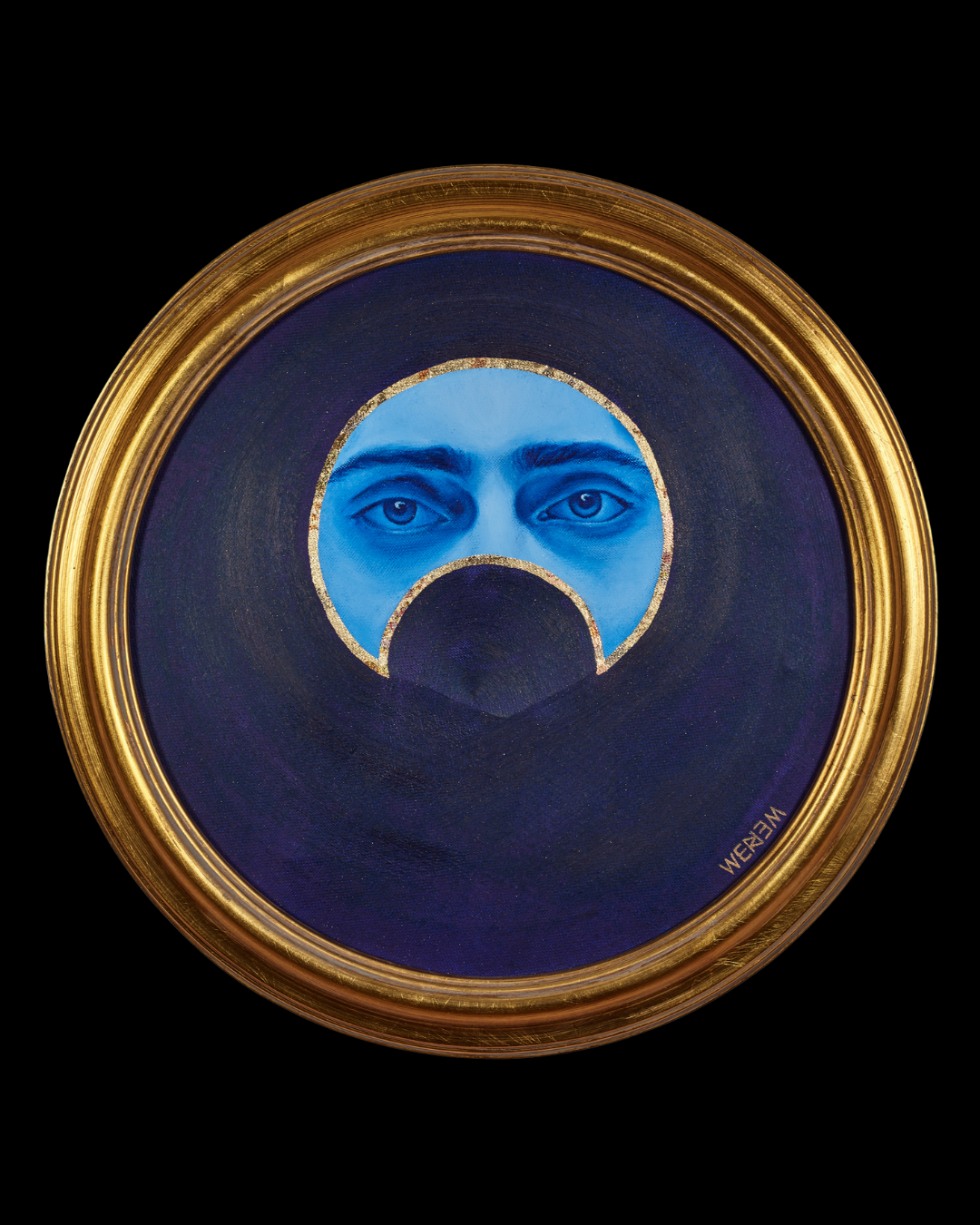 La Lune a des Yeux explores the moon as a symbol of human presence and emotion. Each painting isolates a fragment of a face framed by the crescent moon, an emblem long associated with Pierrot. The crescent acts almost like a keyhole, offering only a glimpse of the gaze, which shifts from searching to sorrowful, questioning to resolute.