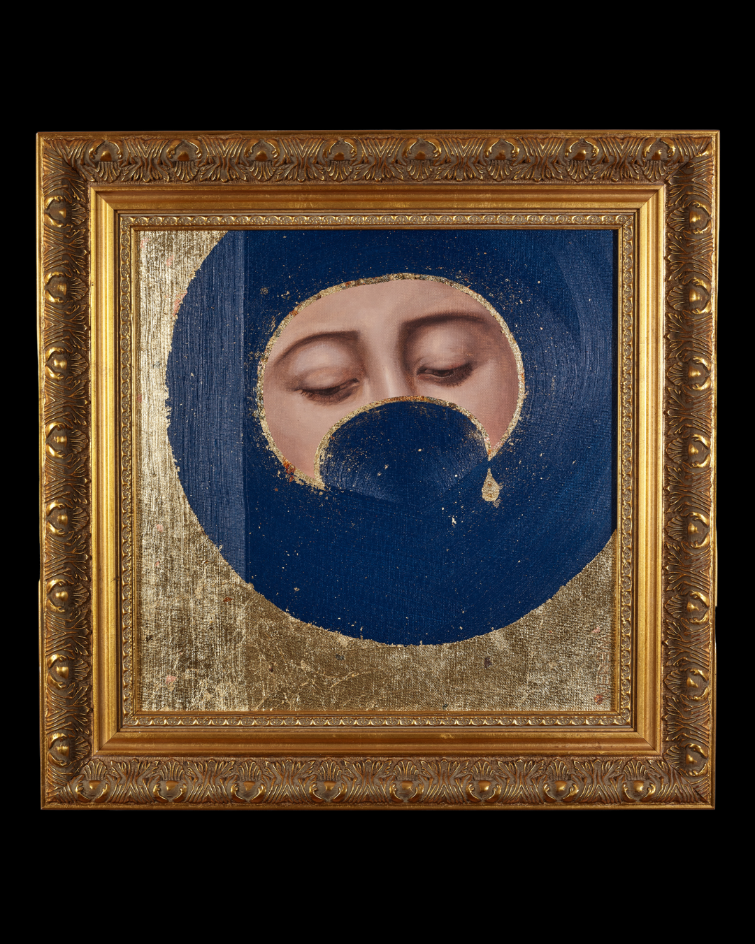 The deep blue ground recalls the night sky, while shimmering metal leaf turns sorrow into radiance. Grief becomes gold, silence becomes presence, and vulnerability becomes strength. Echoing the language of sacred icons yet rooted in profoundly human emotion, the works speak of loss, doubt, longing, and hope.